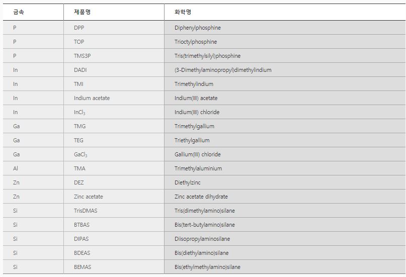 반도체용 Precursor(반도체용 전구체)는 독자적인 유기금속 화합물 설계, 제조기술을 바탕으로 고객사에 적극적으로 대응하고 있으며, CVD/ALD 전구체를 제조하여 국내외 업체에 공급하고 있습니다.